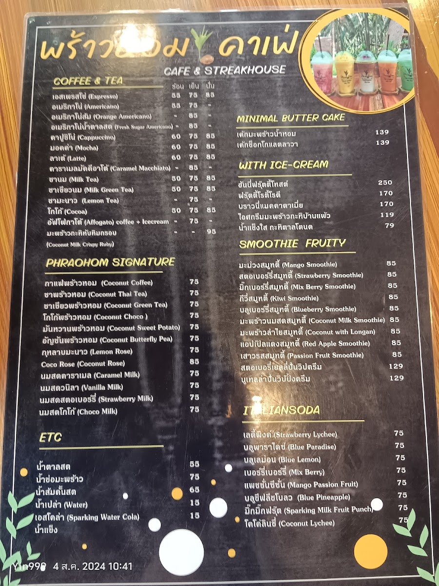 The menu showcases a delightful fusion of traditional Thai dishes and innovative desserts. Be sure to try the Pad Thai with coconut juice noodles—a twist that's both refreshing and flavorful. Don't miss their signature coconut milk coffee and a range of coconut-infused drinks that perfectly complement the tropical setting.